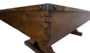 In addition, because of the leg design, this table functions perfectly with our dining tops and custom height seating, allowing you to convert this table into a dining/game table for 8 people or more.