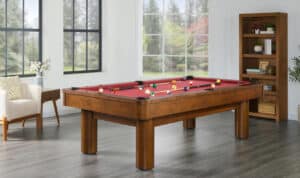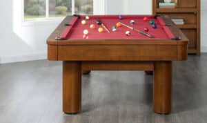 The Dillard Pool Table combines expert pool table manufacturing with new age modern features. Matching rounded rail corners, blind corners and post style legs give this table a truly comtemporary look. As for construction, this table has all the features that make Legacy brand tables play perfectly including one inch backed slate, gum rubber rail cushions, hardwood construction, multiple exclusive finishes and an industry leading limited lifetime warranty.