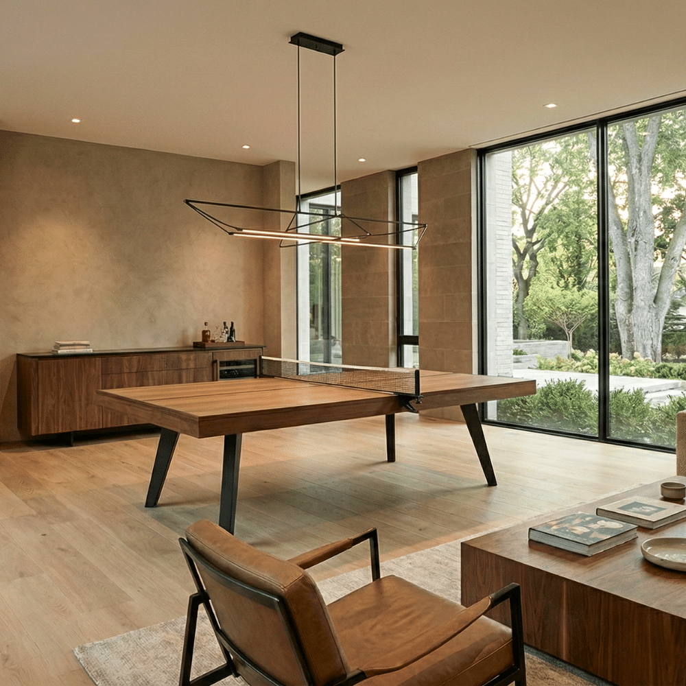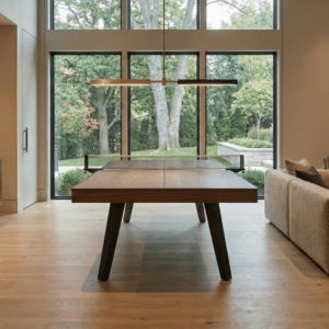 The Harper Table Tennis Ping Pong Table by Plank & Hide will bring family enjoyment for many years to come. Featuring a beautiful walnut finish and crisp gunmetal legs, the Harper is sure to make a statement and is regulation size, 9′ x 5′. Take your Game to the next level with this phenomenally gorgeous unit.