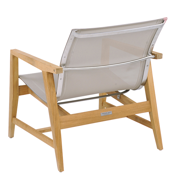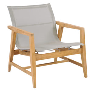 The Marin collection has classic Danish modern styling, with beautifully tapered arms and legs meeting at sharp angles. Frames are substantial and sturdy, crafted from Grade A teak wood and stainless steel hardware. Sling seating surfaces made from Batyline™ are comfortable, replaceable, and easy to care for. Stocked in Taupe Sling.