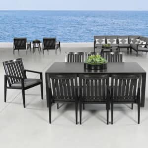 Drawing inspiration from a space where an artisan creates their work, the new CABANACOAST® Studio collection’s bold outline is a stroke of brilliance. Employing a creative blend of hand-brushed aluminum in Sherwin-Williams® Black finish and new SOL Rope™ Granite, Studio captures the essence of inspired outdoor design. Crafted with distinct, angular back legs and a pitched back for superb comfort, Studio is available in dining, deep seating, and sectional frame options.
