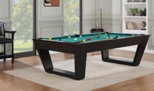 Sharp lines and tasteful angles make the Tellico Billiard Table an excellent choice for someone designing a contemporary game room. Created to satisfy the savviest designer. Named after the Tellico River in the Blue Ridge Mountains, this tables unique design does its best to match the beauty of this meandering river.